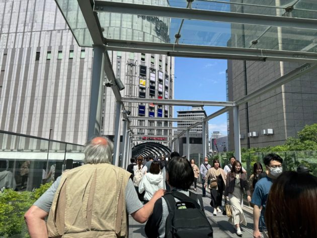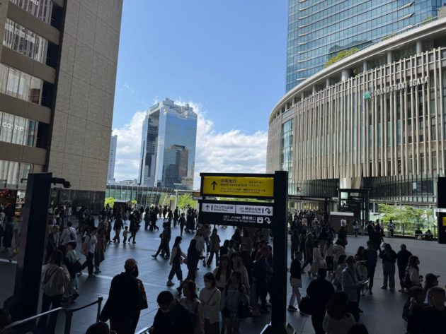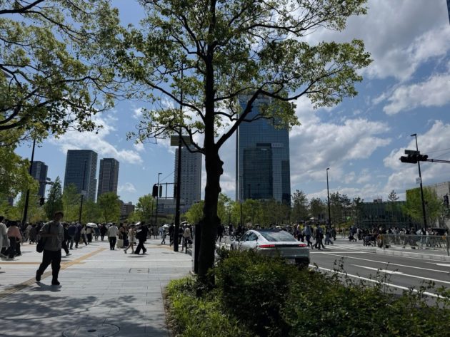 うめきた中央の交差点もGW真っ只中で凄い人の数。
