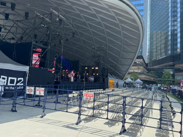 ライブは15時開始で13時50分には現地へ。写真を撮っているといきなり後ろから肩を揉まれたので「誰だ?」と振り返ると、グラングリーン大阪を創った男!
