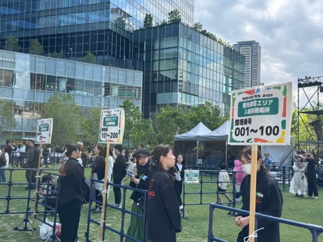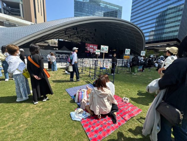 4月の「大阪・光の饗宴2025 万博特別点灯式」でのコブクロライブは当選したが、今回は抽選にハズれた。ま、コブクロの時は会場のなんば広場内に入って座れたことで、全体の雰囲気を撮影できなかったため、今回は当たっても公園の後ろから野外ライブを楽しむ全体の景色を見たいと思っていた。
