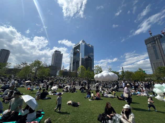 史上最高に人で埋め尽くされたうめきた公園だけど、それでもパーソナルスペースが維持されているのは、計算された設計と日本人の譲り合いの精神によるものか?