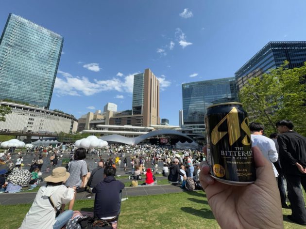 さっきいたところに戻ってきてビールを飲む!