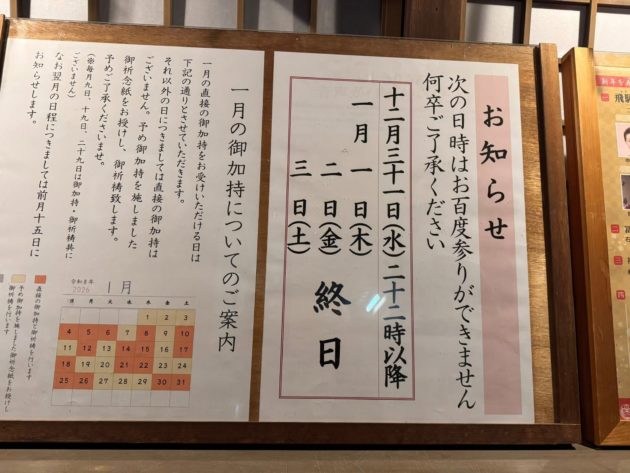 お百度参りが現在も続く石切神社ですが、12月31日の22時以降と正月三が日は終日できません。