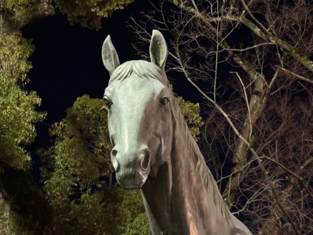 今年は午年「イシキリツルギヤ号」の銅像