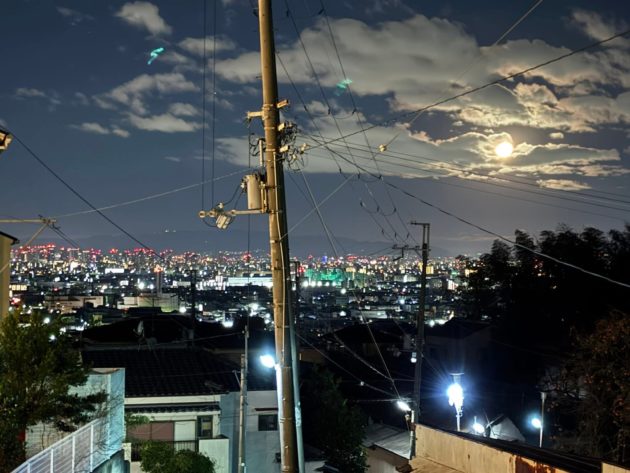 電線と月と大阪の街