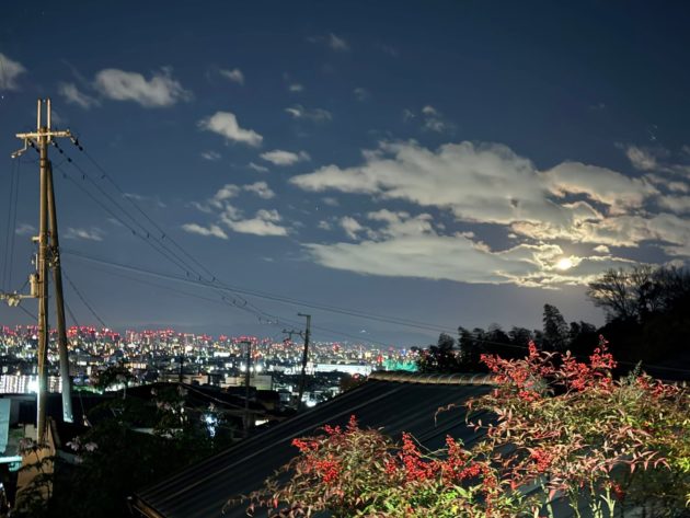 電車の中からもきれいな月が
