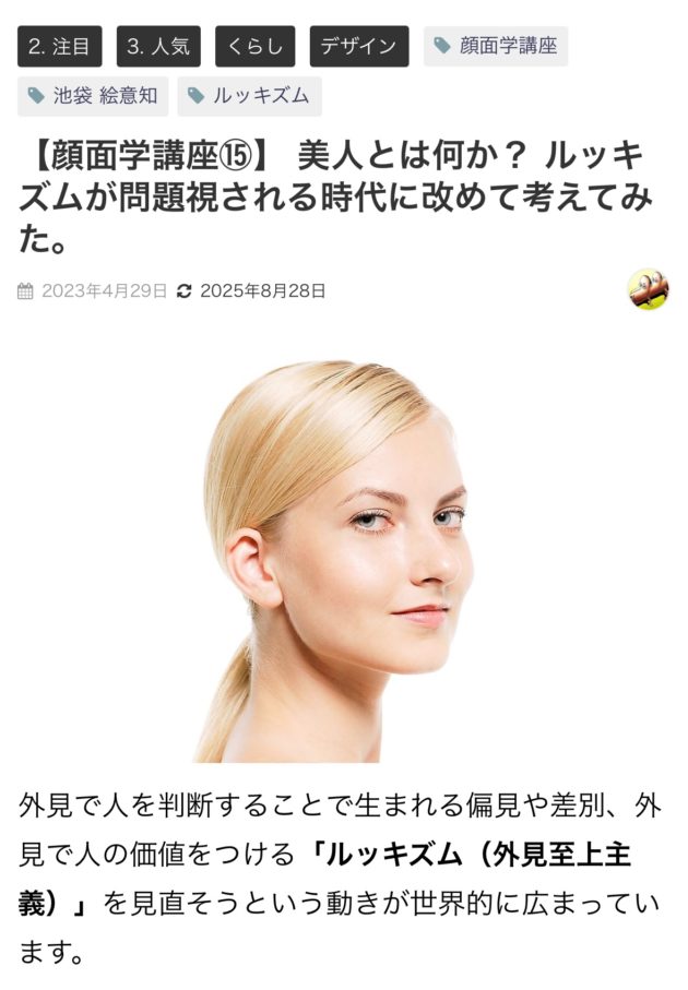 【顔面学講座⑮】 美人とは何か? ルッキズムが問題視される時代に改めて考えてみた。