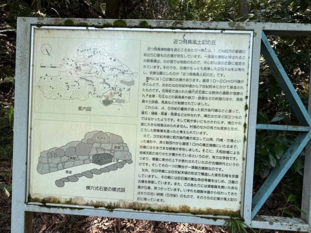 通行止めを越えて「近つ飛鳥風土記の丘」の看板の先の少し行って曲がると爺さんがタバコを吸っていてその先に入口らしきものが見えようやく到着。