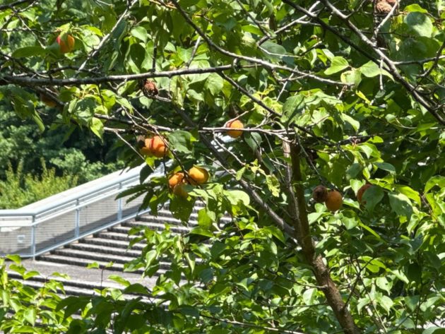 そんなこと言われてもここしか道はないので進むと道に落ちた柿の実?