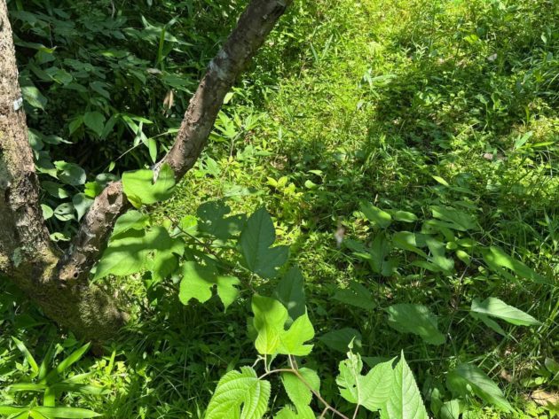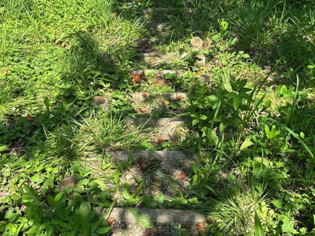 草が生い茂ってるが一応階段っぽい(何かの実がゴロゴロ落ちてる)