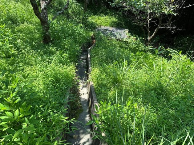 「この道でいいのか?」と思っていると、私の後で屋根っぽいのを撮っていたおばさんが柵を越えて道のない草むらを降りていくのが見えたので「ここが近道?」と自分も降りる