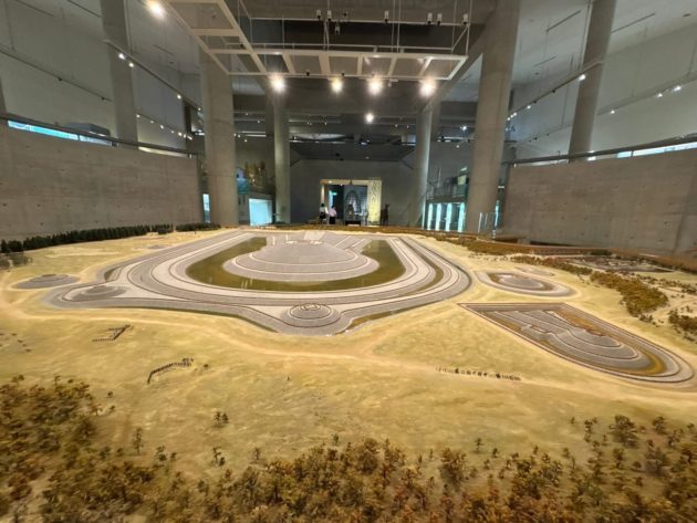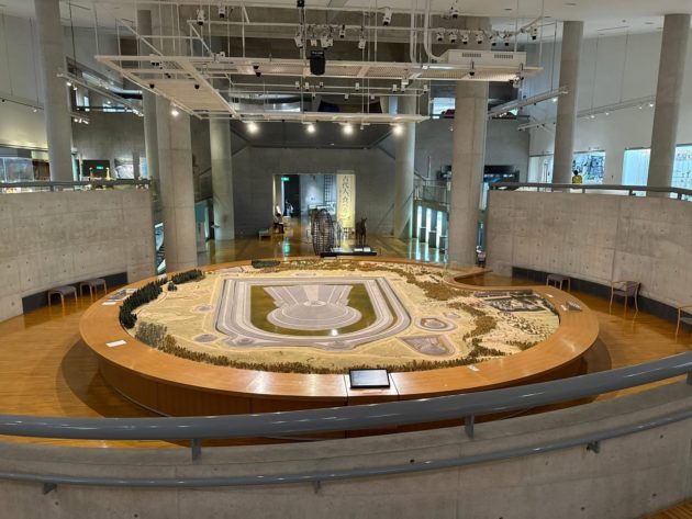 仁徳陵古墳の築造時の姿を、周辺の陪冢群とともに150分の1の大きさで再現。