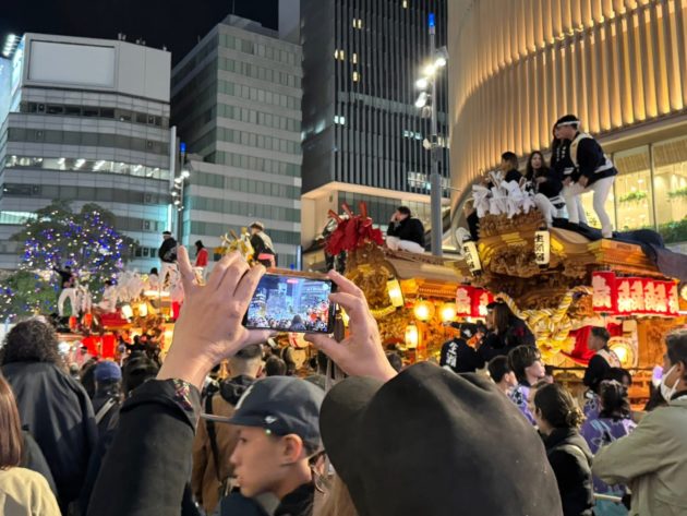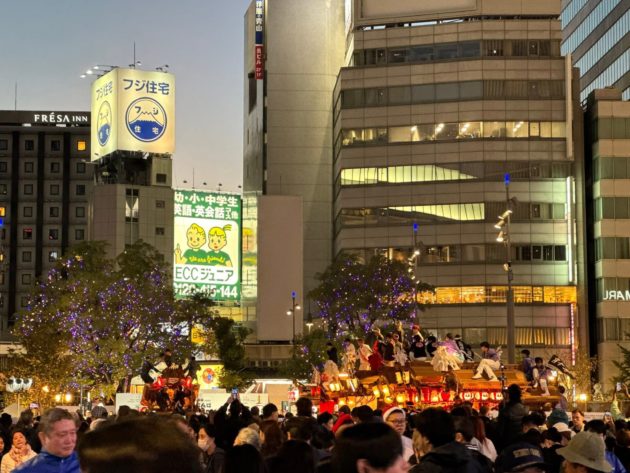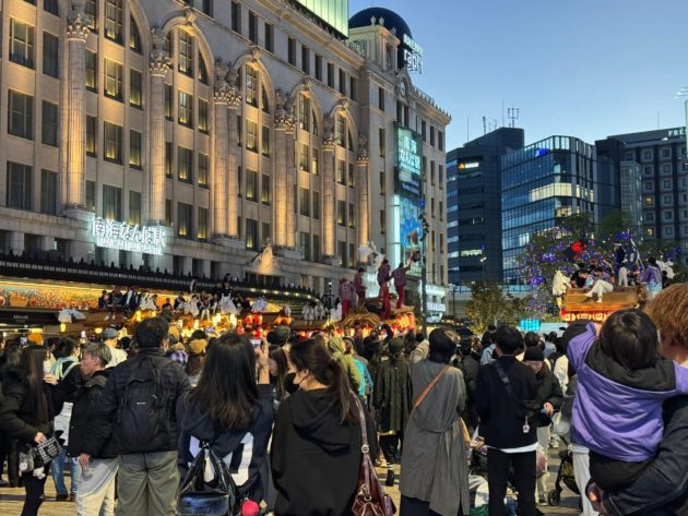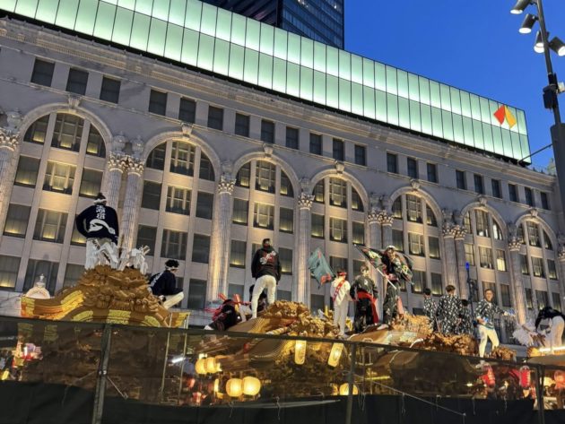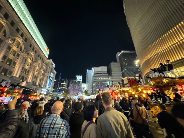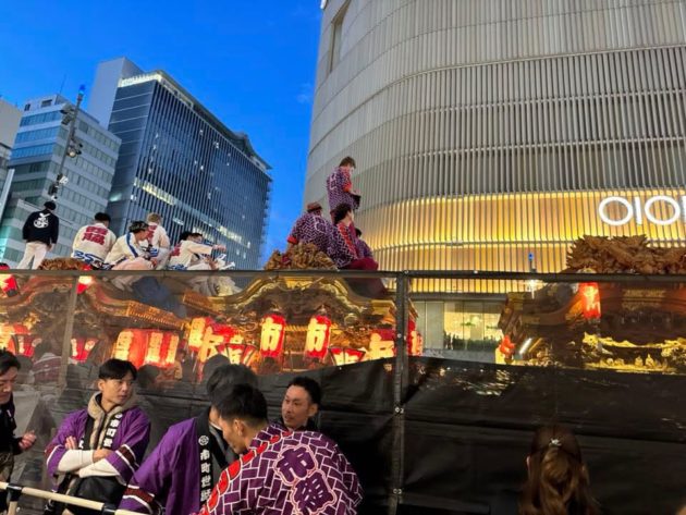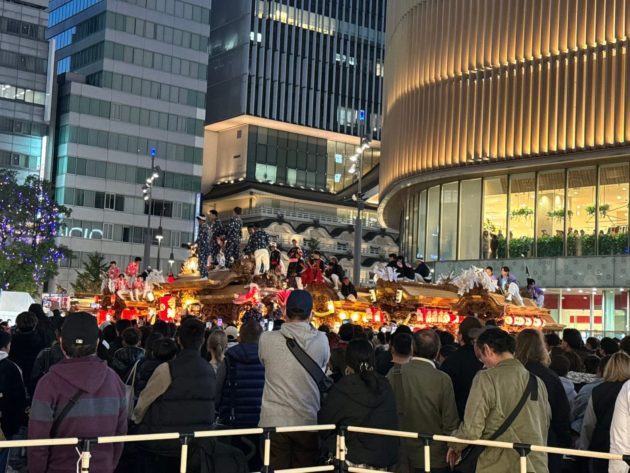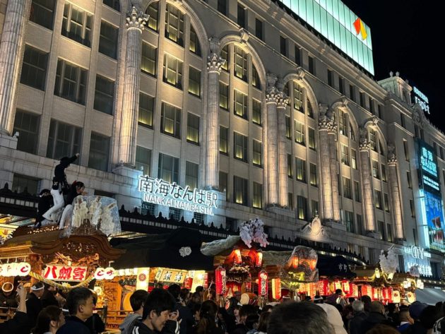 都会のど真ん中、美しい南海なんば駅(高島屋大阪店)の前でだんじり!