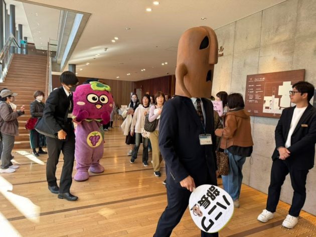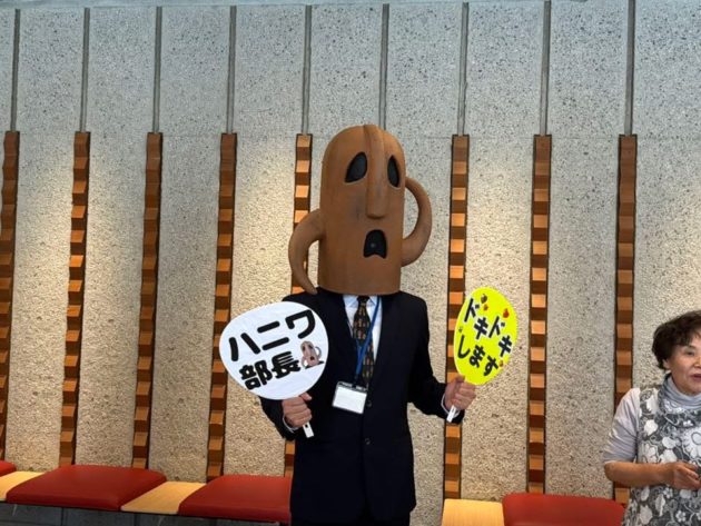 気球搭乗チケットプレゼントの抽選はハニワ部長が番号を引く