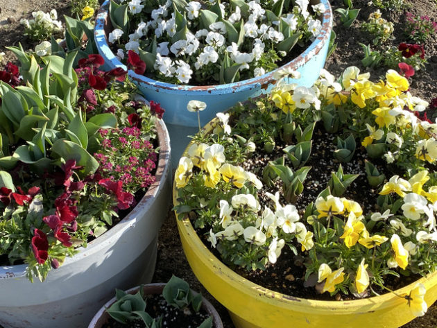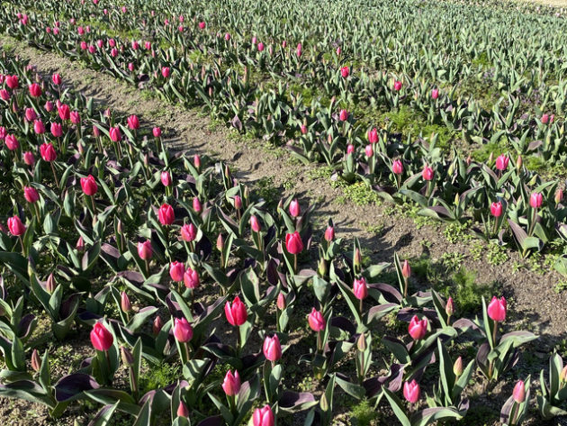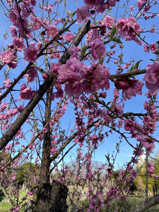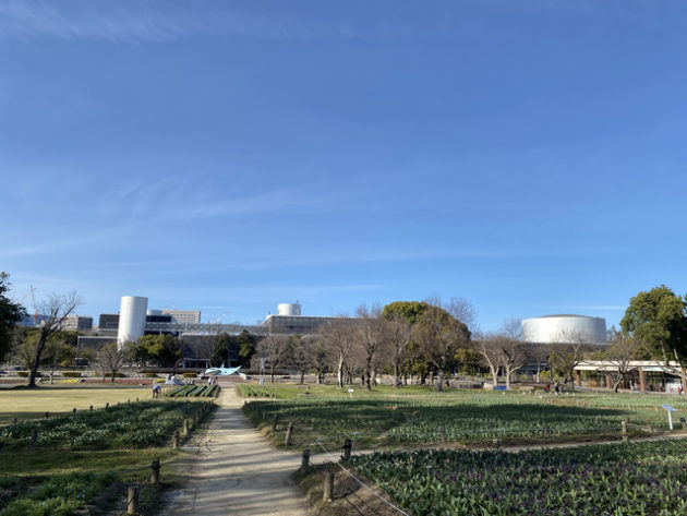 民族学博物館は万博記念公園内にあるため、青空の下、チューリップの花園や梅林を通って太陽の塔を後ろから横から前から眺めつつ中央口の手前へ。
