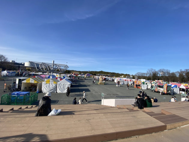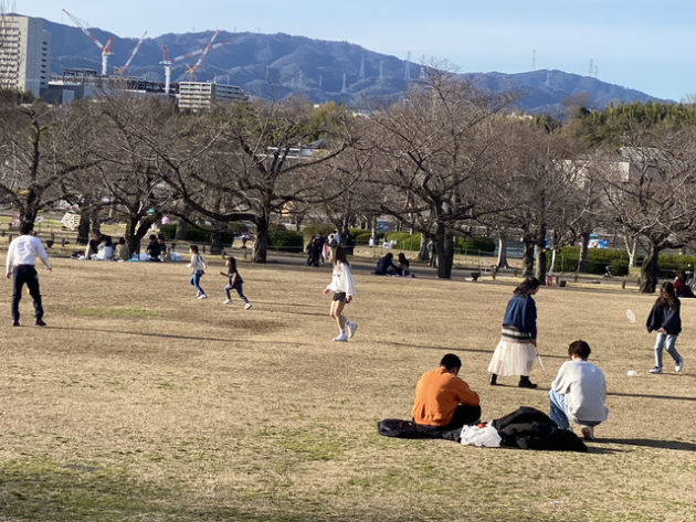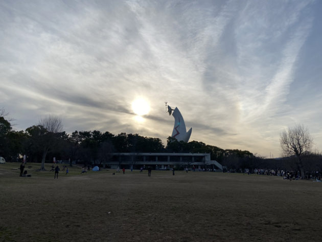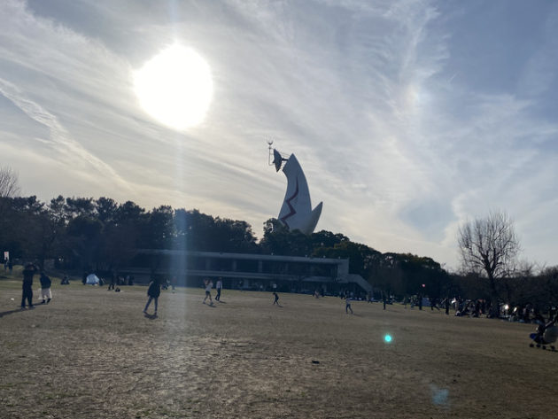 甲子園球場の約65個分の広さがある万博記念公園には、複数の森や滝や池などで構成される広大な自然文化園と日本庭園だけでなく、いたるところに広場があって、人々はサッカーやバドミントン、バレーボール、テントで読書など、豊かな自然の中で人間らく過ごしていた。