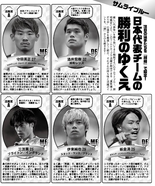 顔相で決める最強サムライブルーイレブン@『女性セブン』(小学館)