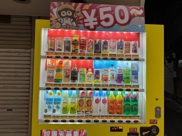 石切の自販機のKINGコーヒーは80円だったけど、布施は50円!