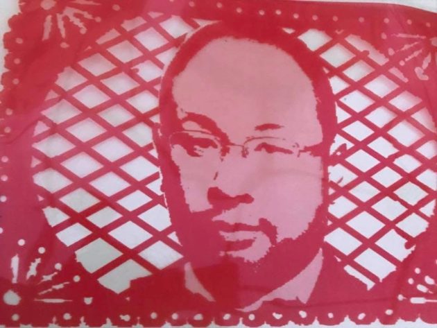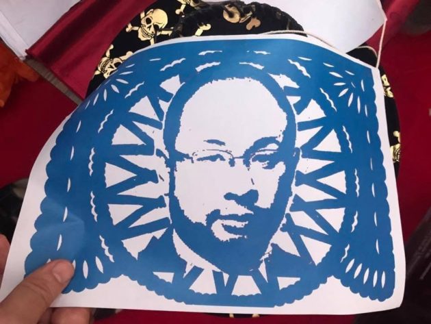 イベント中は気づきませんでしたが、上から吊るされたフラッグの数枚に講演者の顔がアートにプリントされていたことをスタッフの方に教えてもらいました。
