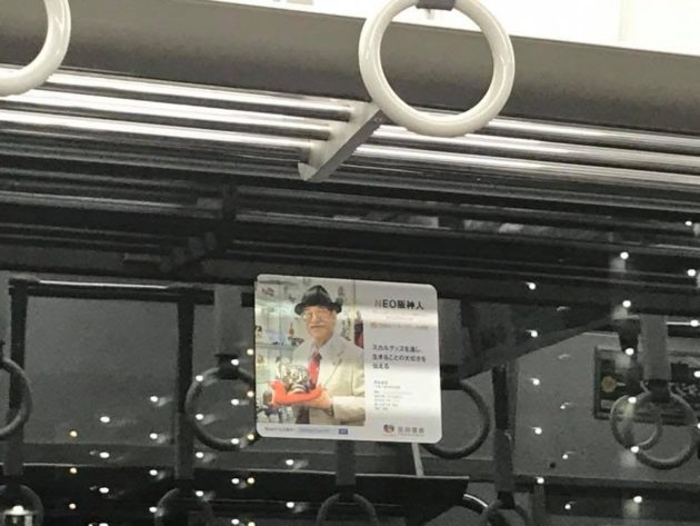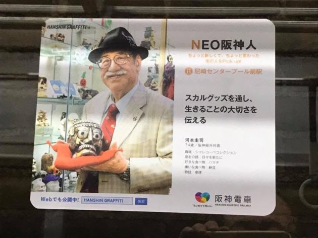 さらに帰りの電車内でふと斜め右を見ると、NEO阪神人の河本圭司(シャレコーベミュージアム館長)先生が!