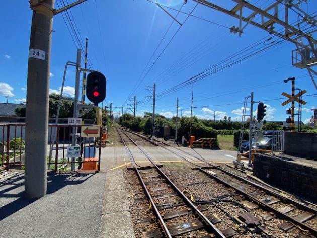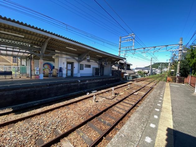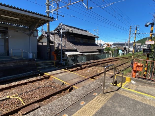 和歌山市駅行きのホームにいくたけ、線路を歩いて渡る。(加太駅方面)