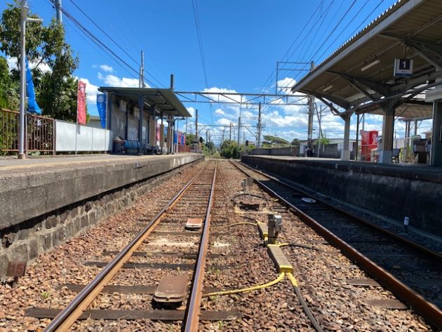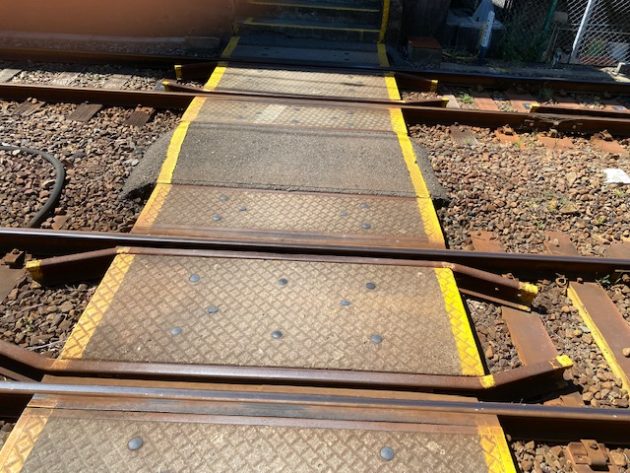 ここを降りて線路を渡って向こうのホームに行くとわかる