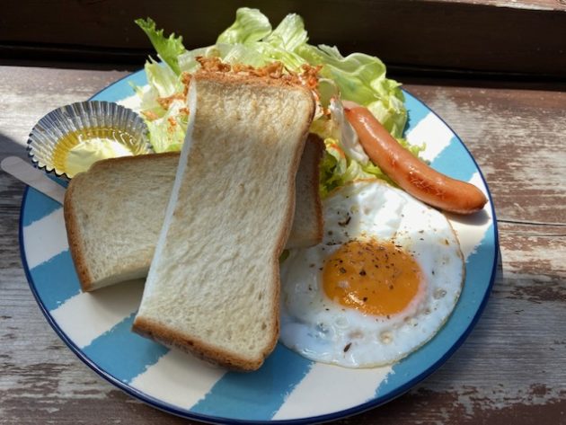 時間はまだ10時36分。ビーチに面した「海の見えるcafe」に入り、モーニングプレートを注文。