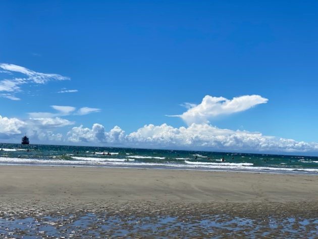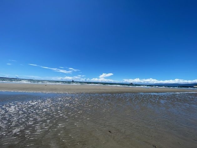これはいい。波打ち際まで歩いてみたが、湘南あたりとは違ってゴミひとつない砂浜。