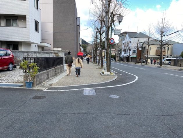 道路を渡って