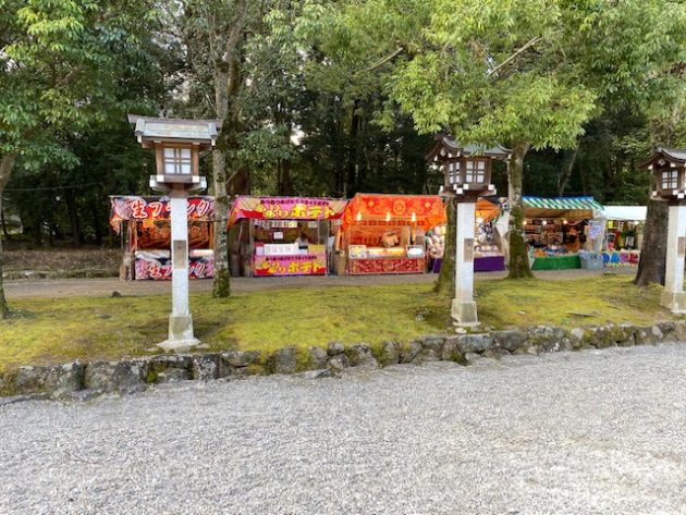 第二鳥居前の橋の手前が定位置の「大行列が出来るたこ焼き屋」も今年はなし。