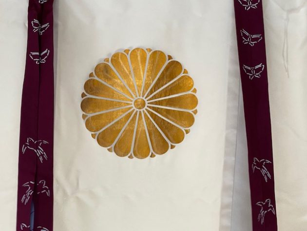 十六葉八重表菊の菊花紋章。