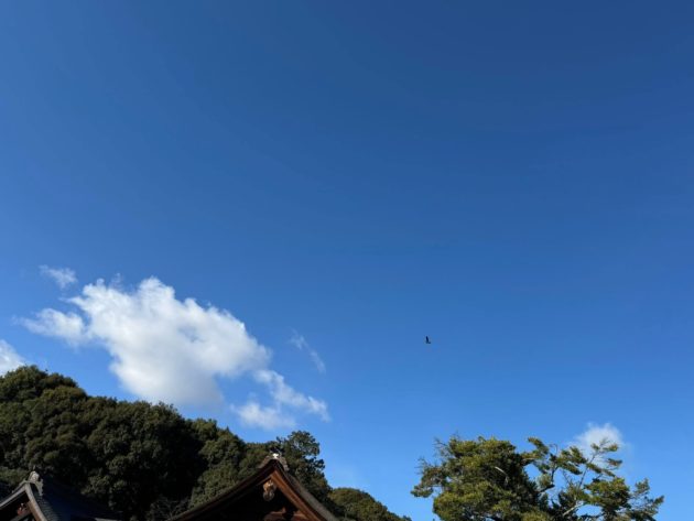 鳥が飛んで行きました!カラスではなく、八咫烏でもなく、クロサギっぽく見えました。