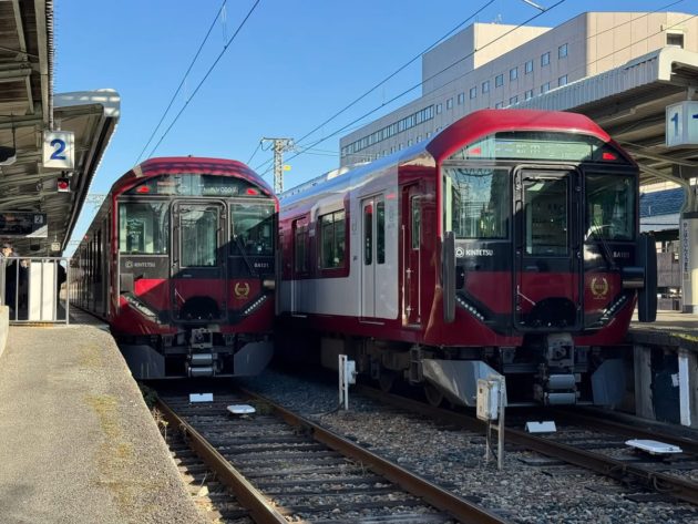 橿原神宮前駅に着くと似たような車両が並んでいて、鉄オタが正面から写真を撮っていました。
