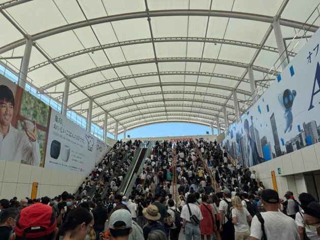 改札を出て万博会場に上がるところ