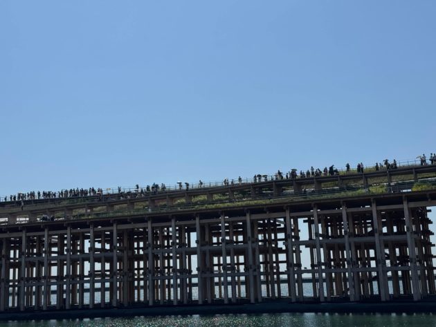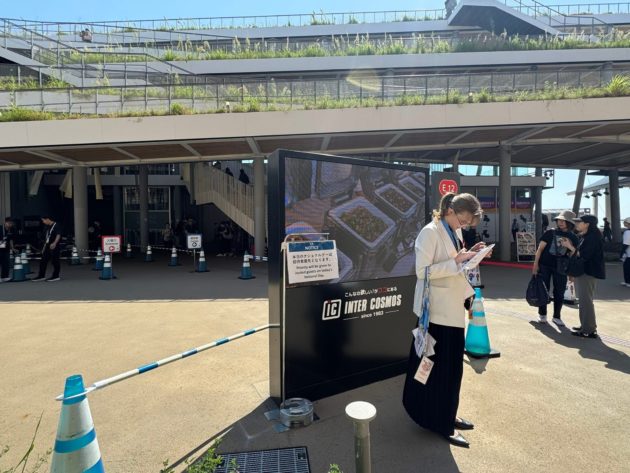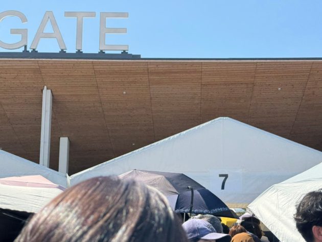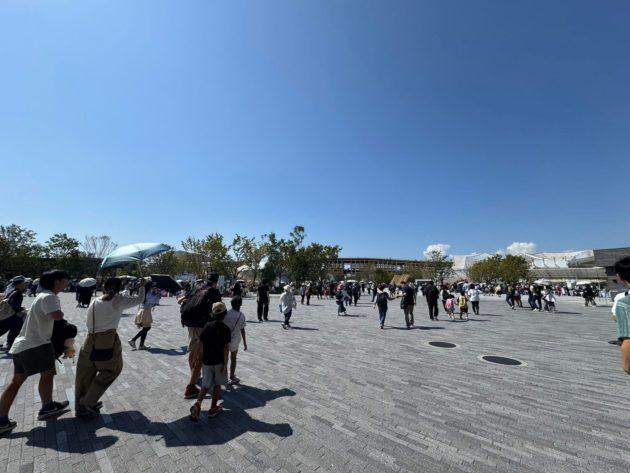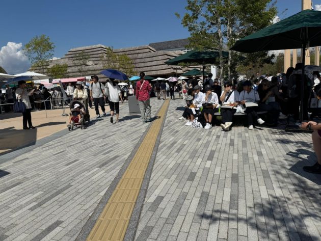 大屋根リングの下の道は午前中からこの人の多さ