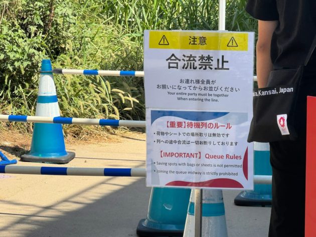 前回、タイパビリオンの入場並びで、前のジジババに娘と孫が合流してたけど、合流禁止じゃん!