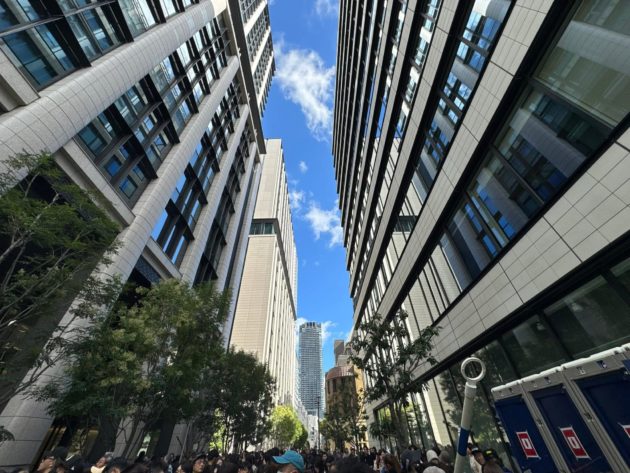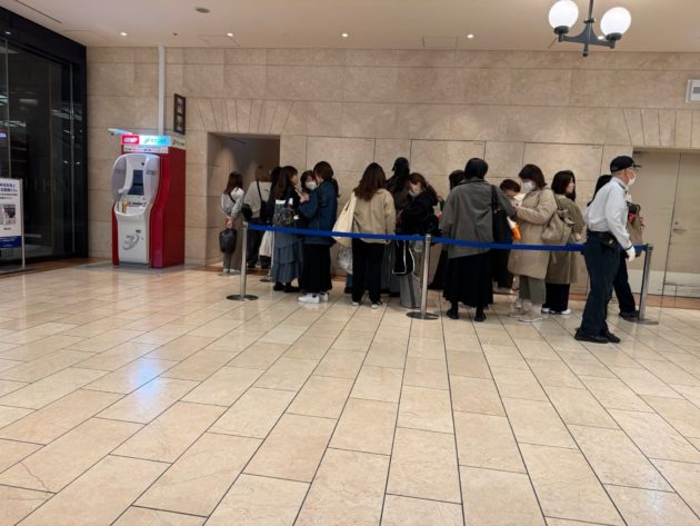 odonaを上がって出ると、「さっきまではここから自由に入れたが、混んできたから入口が南の本町側に」と言われ、「人が歩いてる向こう(東)からも行けますか?」と聞いて、また地下に降りて逆の東側の日本生命ビルのほうへ、