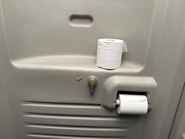 odonaでトイレを借りたけど、入場が始まる前に2度目のトイレ。簡易トイレの水が流れない。