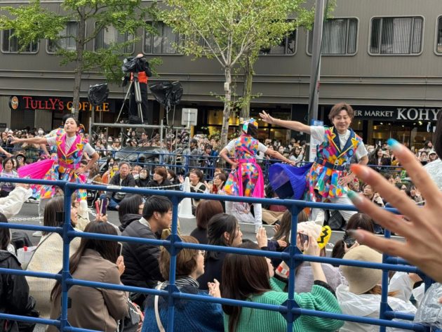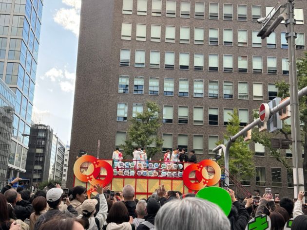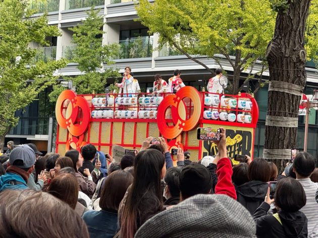 本町までやって来るとSUPER EIGHTが神輿みたいなのに乗り込むところ!