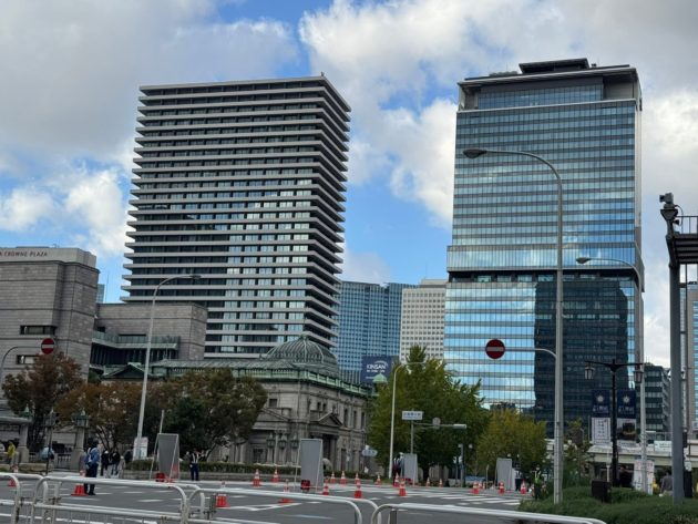 ゆうちゃみが通りすぎた後は万博のパビリオンのユニフォームを着たファッションショーになり、そこで出てきて、今年6月に出来た超高層ビル「淀屋橋ステーションワン」を見に行くことに。
