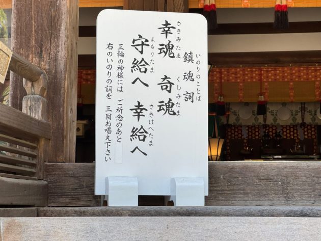 「幸魂(さきみたま)奇魂(くしみたま)守給(まもりたまえ)幸給へ(さきはえたまえ)」