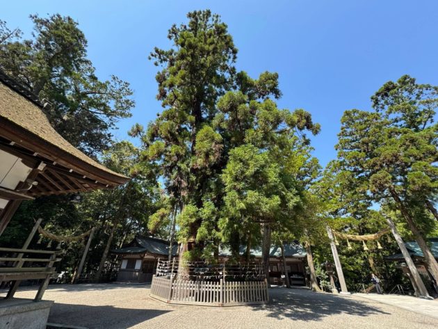 大物主大神の化身とされる白蛇が棲むことから名付けられたご神木。樹齢500年とも言われ、蛇の好物の卵が参拝者によってお供えされています。