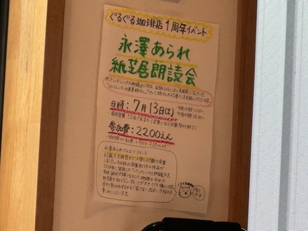 その永澤さんからデビュー作『パンパンハウス物語』(風濤社)を元にした紙芝居朗読会を7月13日(土曜日)に開催すると連絡をもらった。「駒川商店街」近くにある昭和の古家をリノベーションした「ぐるぐる珈琲店」の1周年イベントだという。