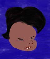 黒人女性としては初めて国務長官に就任したライスさんですが、“ブッシュ大統領の家庭教師”と呼ばれるくらい非常に頭が良いことでも有名です。15歳でデンバー大学に飛び級で入学し、女性として最年少の26歳でスタンフォード大学教授になり、IQ(知能指数)は200とも噂されていますが、その頭の良さは顔にも表れています。一般的に広いとされる額の更に倍ほどの額がそれを示していますが、顔の半分が額かと思うような本当に巨大な額です。額が縦に広い人は物事を深く考えるタイプですが、ライスさんは一般の人の2倍を考える頭脳を持っているのではないでしょうか。