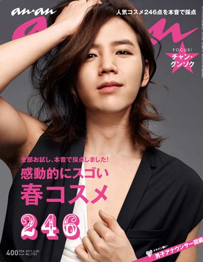 私がチャン・グンソクさんを知ったのは、【テレビ局ごとの傾向が丸わかり!男子アナウンサーの顔相研究。】でコメントした3月23日発売の『anan(アンアン)』の表紙。とても優しい目で、一瞬「女の子???!」と驚きました。長くて曲線的な髪型のせいもありますが、よく見るとアイラインが入った目をしているのも理由だったようです。丸みのあるタレた目といいふっくらとした厚い唇といい、女性のパーツです。丸みのあるタレ目は優しい気づかいができる顔相。ふっくらとした厚い唇は情熱の表れ。恋愛でも仕事で、趣味においても、コレと思ったら一気に燃え上がるタイプです。