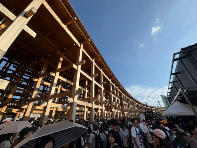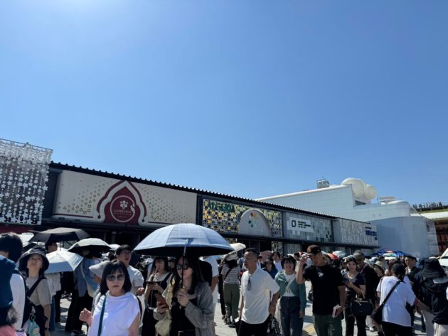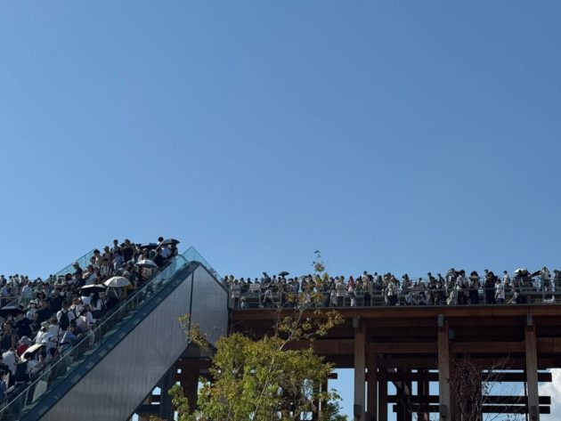 大屋根リングの下の道もグッズ売場のお会計最後尾のプラカードが出て身動きが取れない。