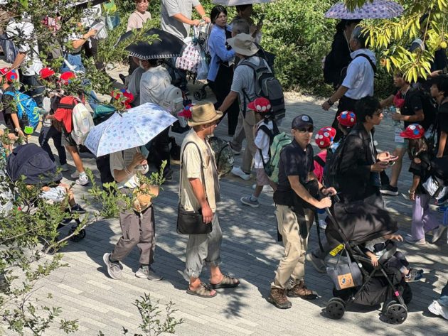 ミャクミャク仕様の帽子の小学生たち