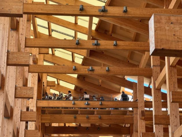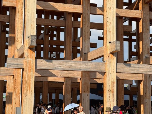 万博会場の中央部にある「静けさの森」一画に建つパビリオンで、森の集会所は自由入場OKで休憩所のようになっていました。