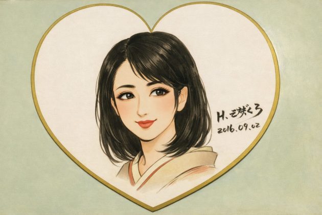 ということで、上の私が描いた吉永小百合さんの似顔絵画像を元に「この顔を美人画風にして」とChatGPTにお願いしてみたら、こんな絵が出来上がりました!