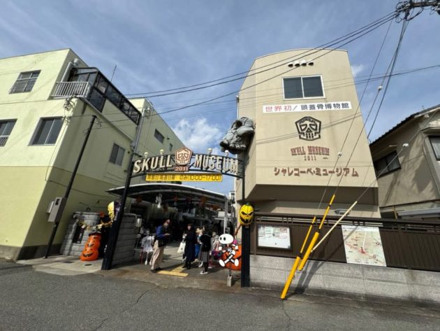 上のほうにある道路側から見えるミュージアムの外観にもシャレコーベ・ミュージアムとなっています!