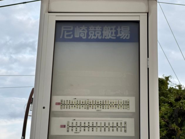 「尼崎センタープール前駅」まで来るとバス停名は昔ながらの「尼崎協定場」